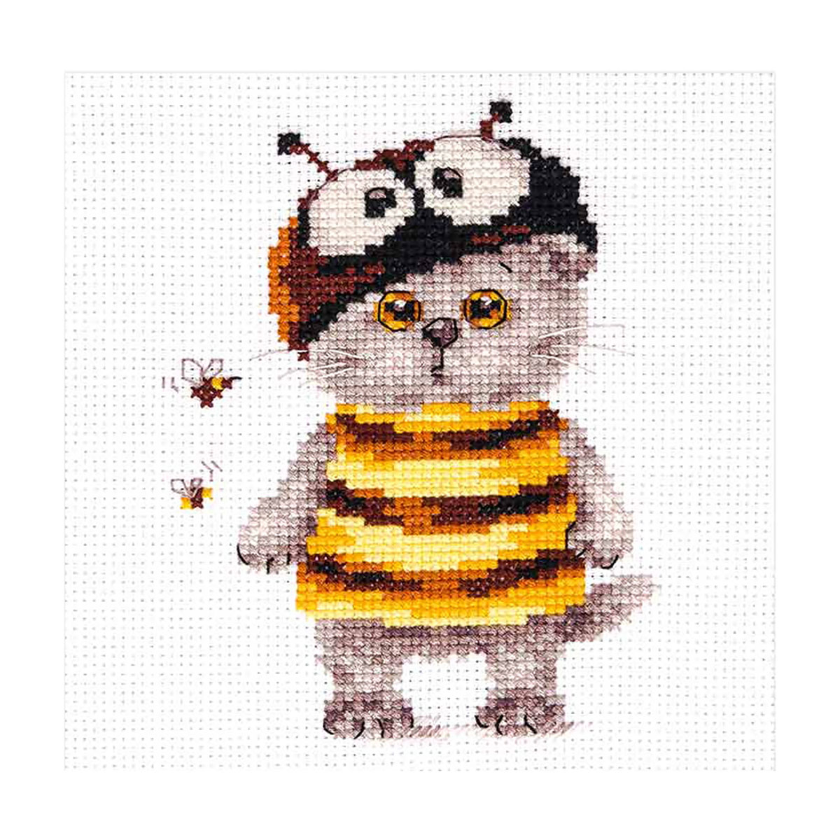 При кажущейся простоте техника ‘крест’ позволяет создавать картины с тонко проработанными детали, плавной цветопередачей. В наборе для вышивки крестом ‘Басик малыш Пчелка’ используется классическая сетчатая канва Aida 14 каунта, которая подходит как для простых схем, так и для картин с подробной детализацией. Для работы с такой канвой, скорее всего, не потребуется увеличительное стекло.