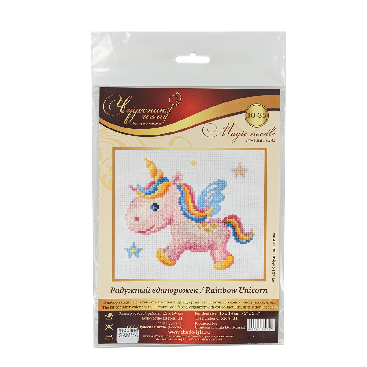 10-35 Набор для вышивания Чудесная игла ‘Радужный единорожек’15 *14 см