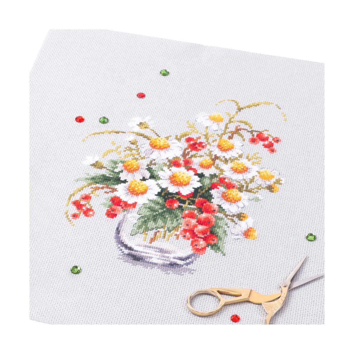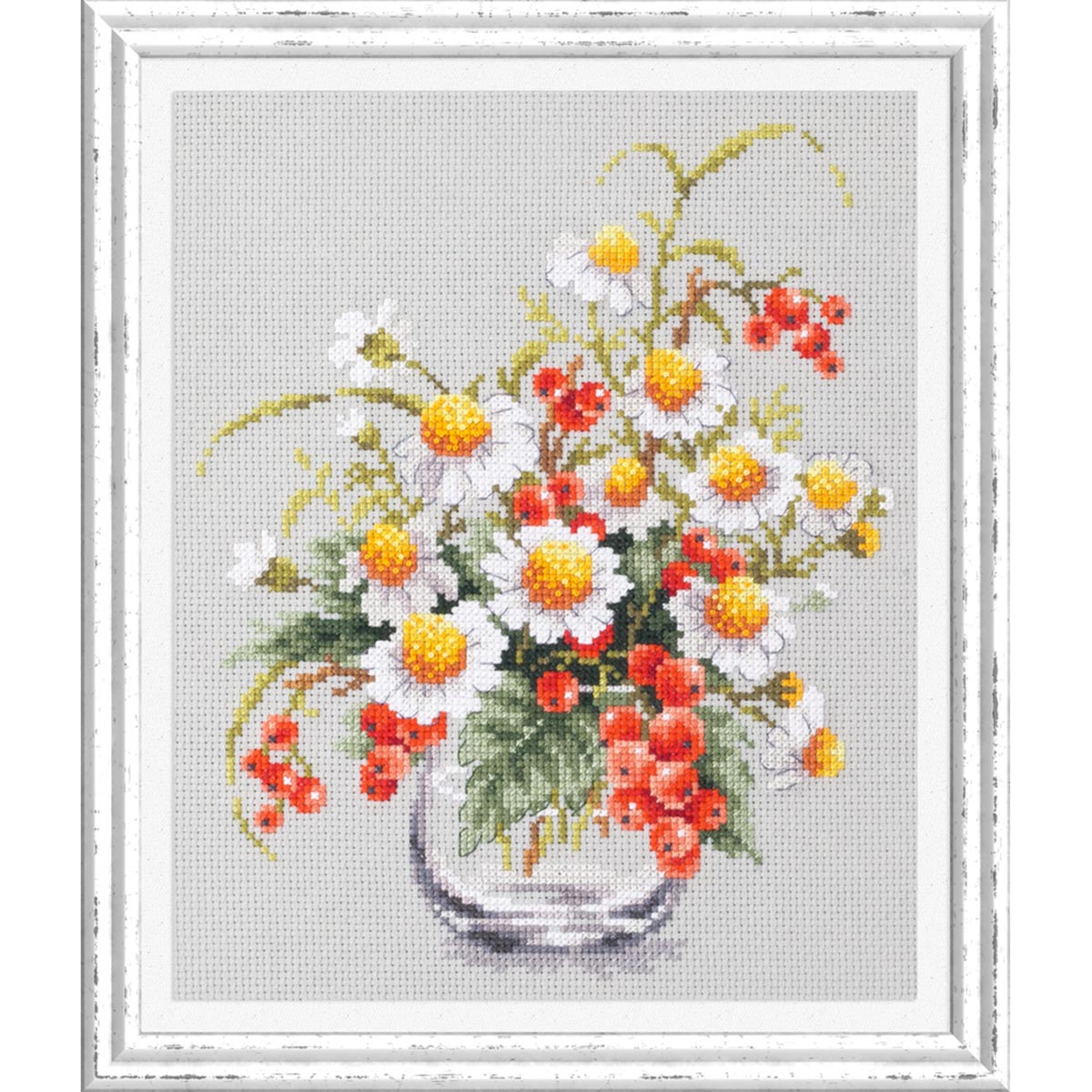 В наборе: канва Aida 14 светло-серая, нитки мулине (хлопок), цветная схема, игла гобеленовая №24, инструкция.