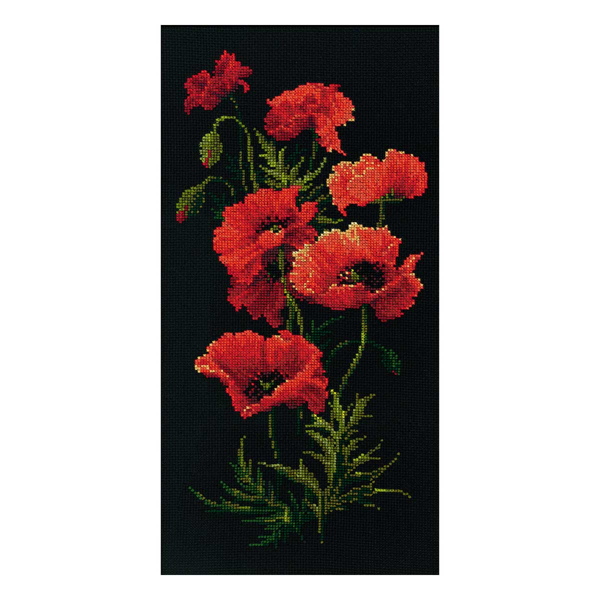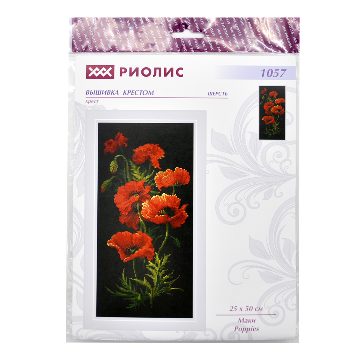 Чтобы вышивать крестиком, не потребуются особые навыки – достаточно проявить терпение, усидчивость и аккуратность. Вышивать по крупной сетчатой канве Aida 10 удобно и просто. В наборе для вышивки крестом ‘Маки’ используются шерстяные мулине – они позволяют плотно зашивать крупную сетчатую канву Aida 10, стежки получаются матовыми, достаточно объемными. Следуйте инструкции, выкладывайте равномерные стежки, и постепенно из-под вашей иглы начнет ‘проступать’ картина со сложной гаммой, плавными цветовыми переходами.