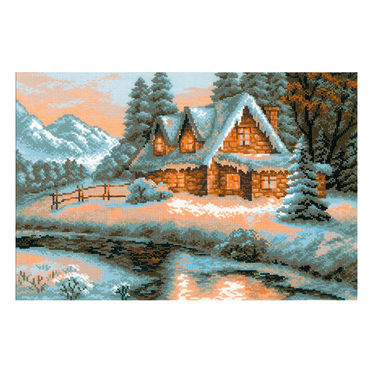 Чтобы вышивать крестиком, не потребуются особые навыки – достаточно проявить терпение, усидчивость и аккуратность. В наборе для вышивки крестом ‘Зимний пейзаж’ используются шерстяные мулине – они позволяют плотно зашивать сетчатую канву Aida 14, стежки получаются матовыми, достаточно объемными. Следуйте инструкции, выкладывайте равномерные стежки, и постепенно из-под вашей иглы начнет ‘проступать’ картина со сложной гаммой, плавными цветовыми переходами.
