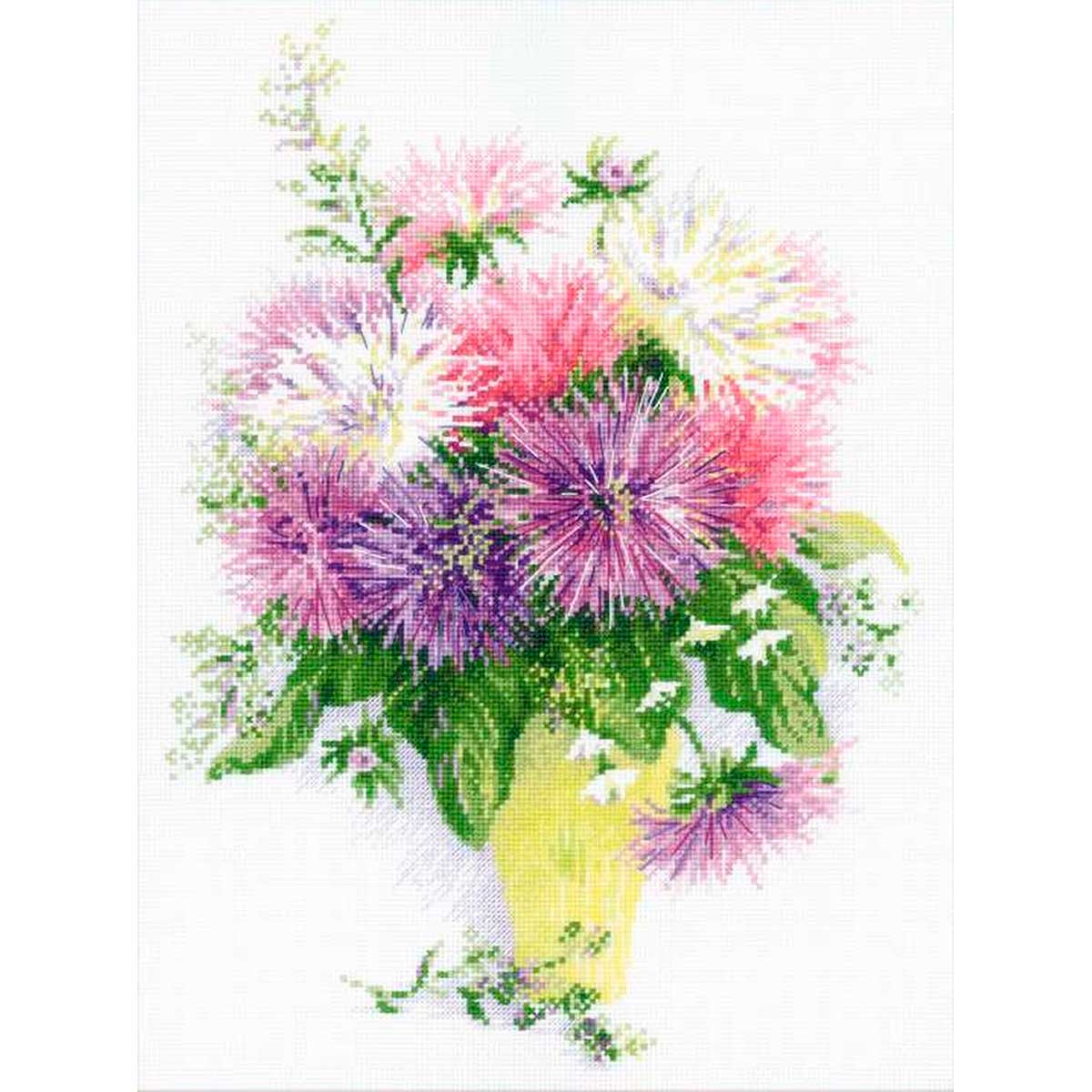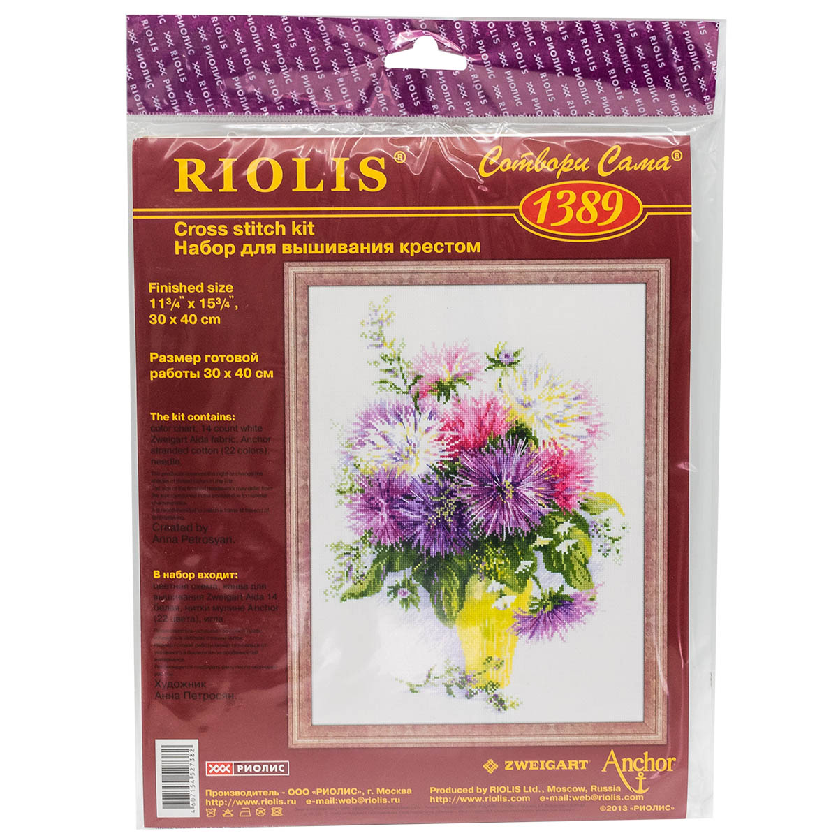 Чтобы вышивать крестиком, не потребуются особые навыки – достаточно проявить терпение, усидчивость и аккуратность. В наборе для вышивки крестом ‘Астры’ используется мулине Anchor – эти нитки яркие, равномерные по всей длине, без узелков и утолщений, что позволяет добиться аккуратных стежков. Следуйте инструкции, выкладывайте равномерные стежки, и постепенно из-под вашей иглы начнет ‘проступать’ картина со сложной гаммой, плавными цветовыми переходами.