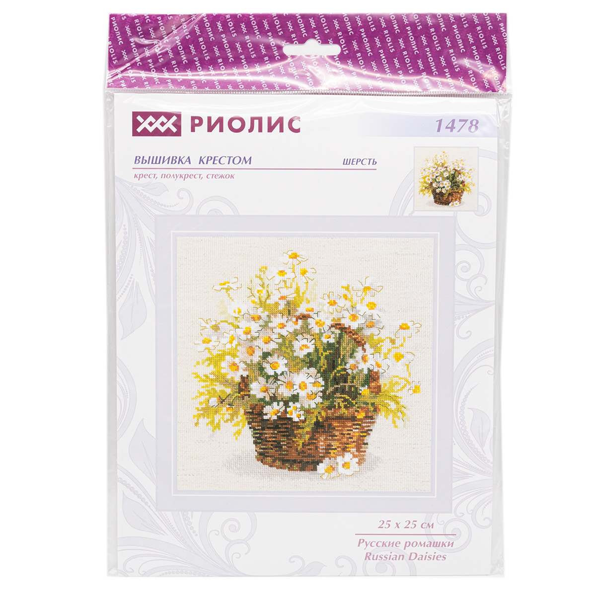 Чтобы вышивать крестиком, не потребуются особые навыки – достаточно проявить терпение, усидчивость и аккуратность. В наборе для вышивки крестом ‘Русские ромашки’ используются шерстяные мулине – они позволяют плотно зашивать сетчатую канву Aida 14, стежки получаются матовыми, достаточно объемными. Следуйте инструкции, выкладывайте равномерные стежки, и постепенно из-под вашей иглы начнет ‘проступать’ картина со сложной гаммой, плавными цветовыми переходами.