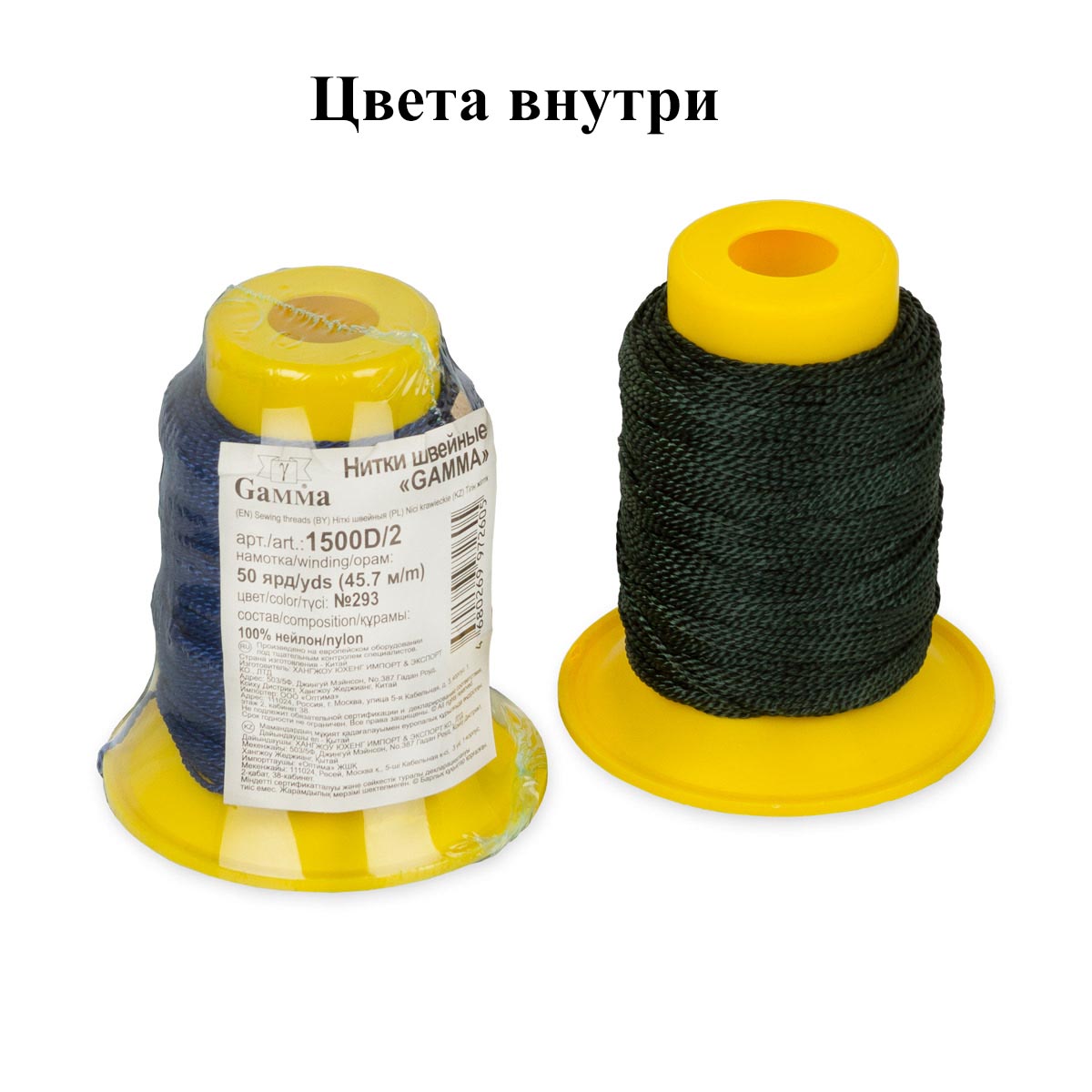 | 1500D/2 | №114 т.красный, №125 вишневый, №128 кремовый, №149 т.рыжий, №224 т.зеленый, №286 св.синий, №293 синий, №320 т.синий, №322 т.синий, №346 т.серый, №359 т.бежевый, №367 серый, №423 т.хаки, №436 св.коричневый, №439 рыжий, №442 коричнево-рыжий, №446 рыжий, №478 серо-бежевый, №492 т.корiчневый, №495 т.коричневый, БЕЛЫЙ, ЧЕРНЫЙ |