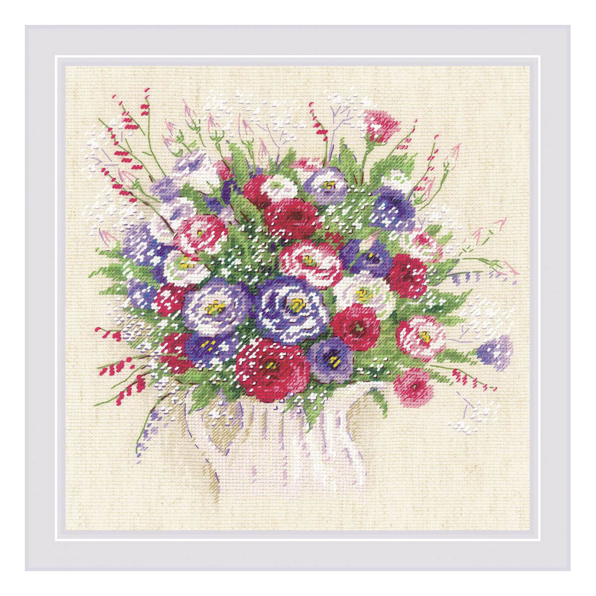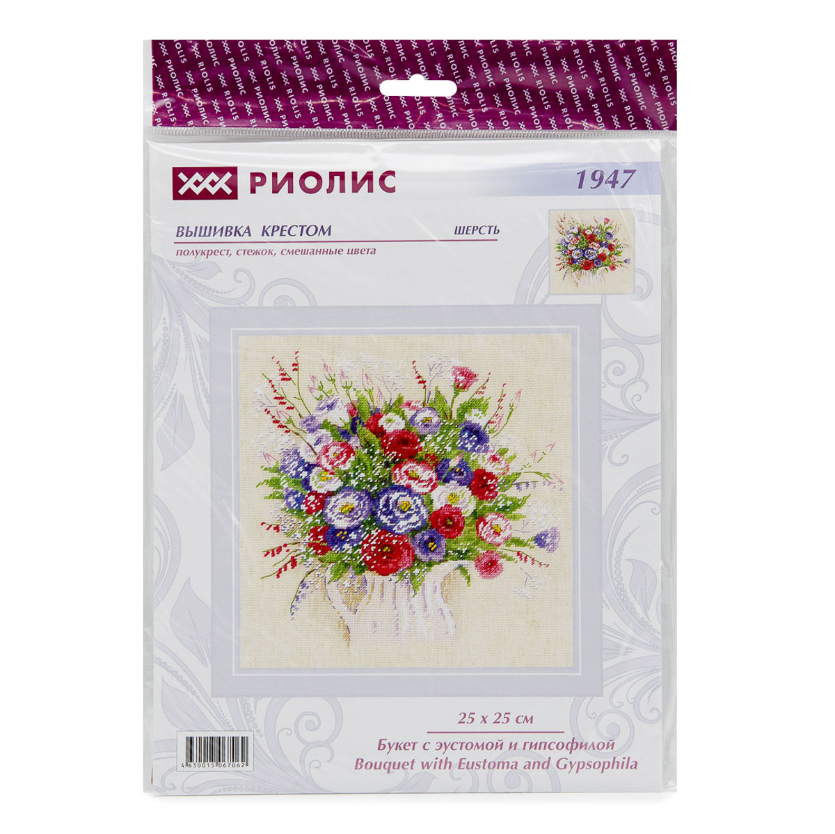 Вышивка ‘Букет с эустомой и гипсофилой’ поможет создать романтичную атмосферу, удивит гостей и подарит вам репутацию умелой рукодельницы.