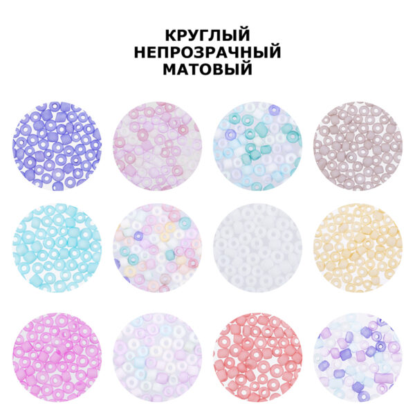 Бисер круглый, матовый макарун, отверстие круглой формы.