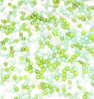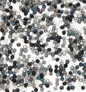 Бисер круглый, прозрачный, отверстие круглой формы.
