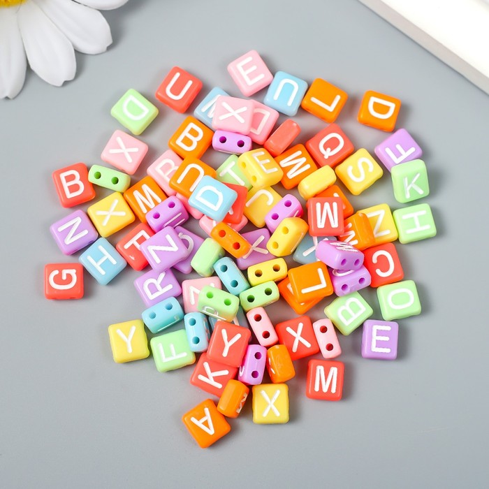 Бусины для творчества пластик «Белые английские буквы», 20гр 0,4х0,8х0,8 см