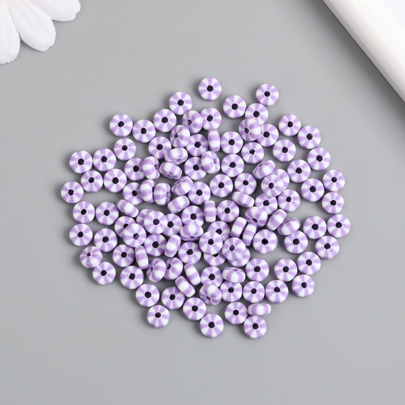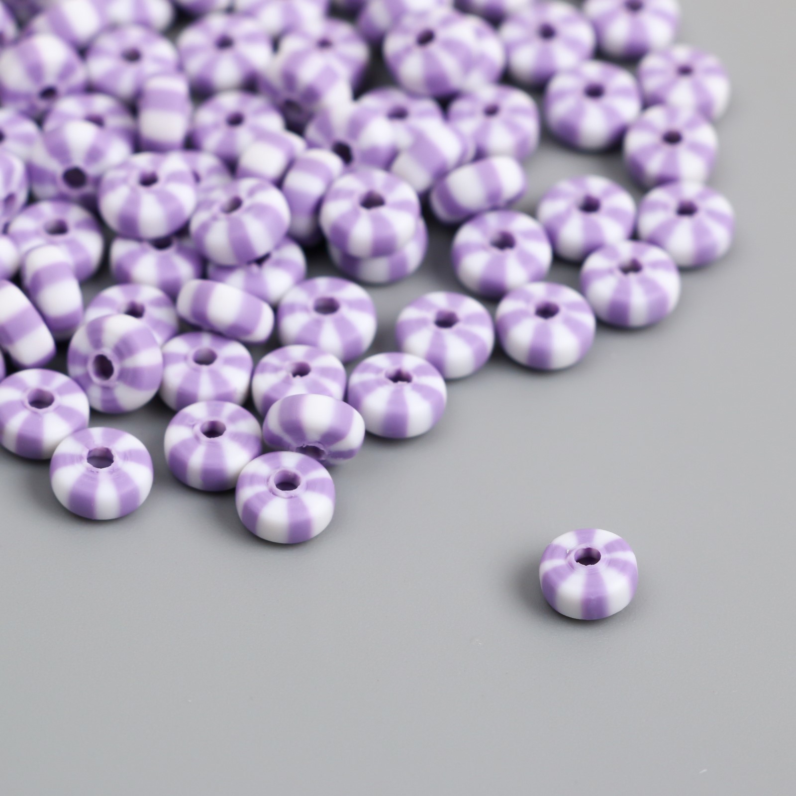Бусины «Колечки. Сиренево-белые полосы», набор 112шт