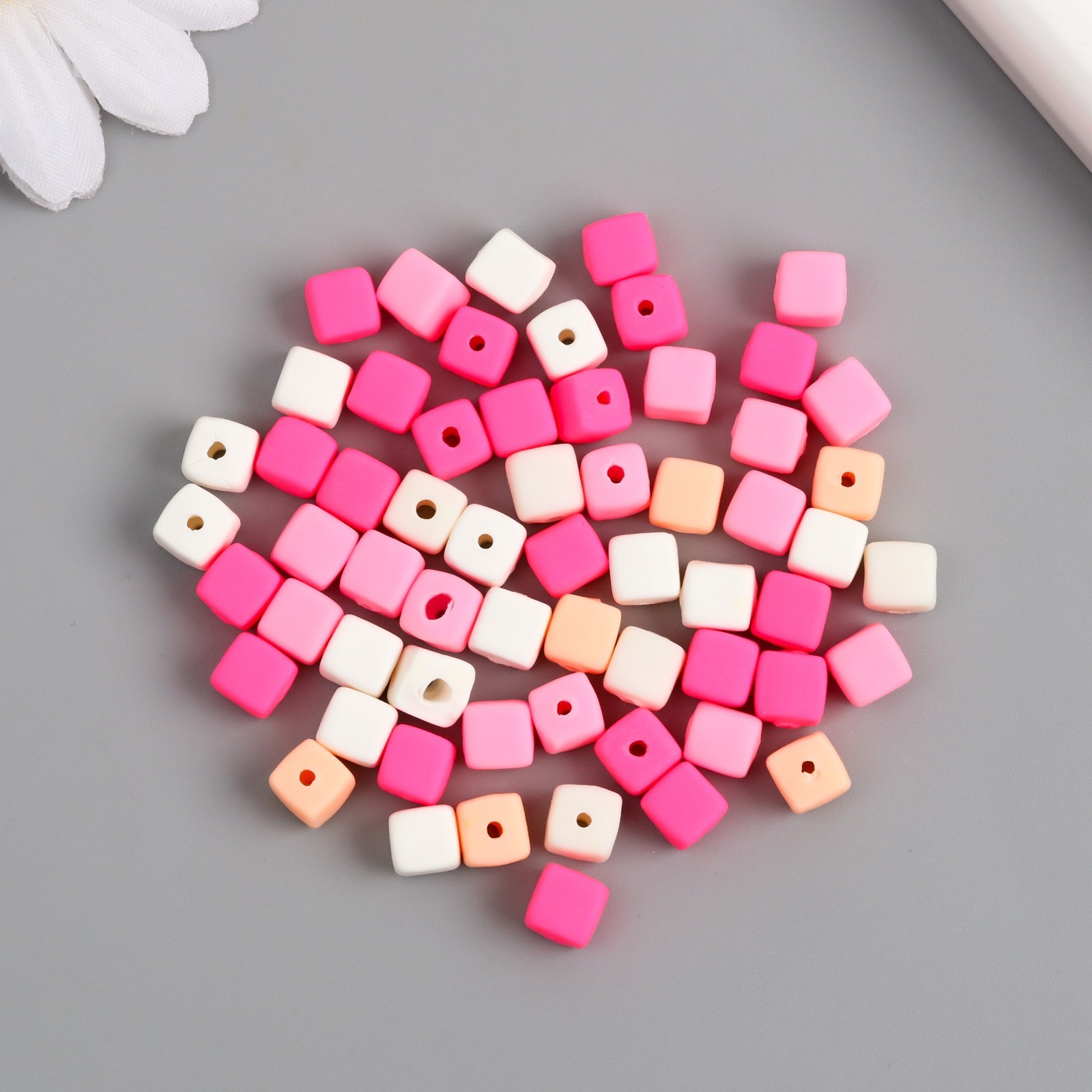 Бусины «Кубики. Нежная пастила», набор 62шт