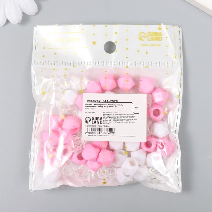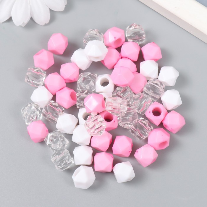 Бусины пластик «Кристалл многогранник. Розовый» набор 30 гр 1х1х1 см