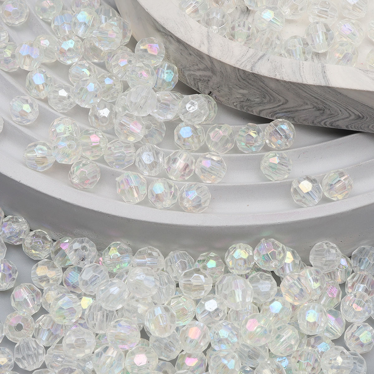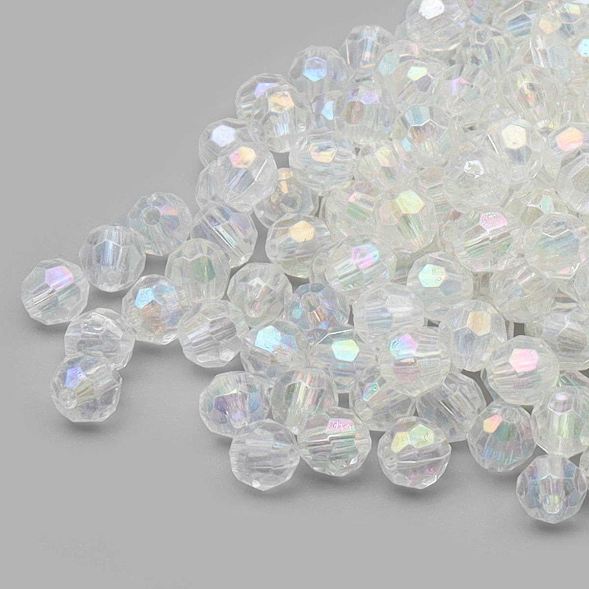 Бусины пластиковые, акрил, прозрачные, граненые круглые, 6мм