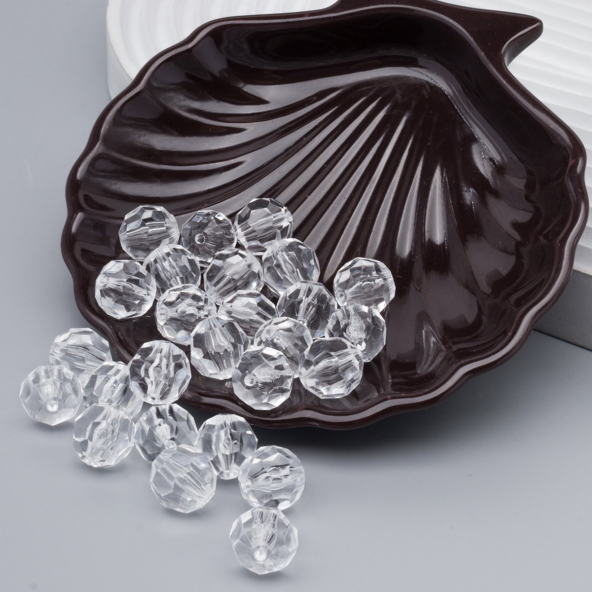 Бусины пластиковые, прозрачные, граненые круглые, 10мм