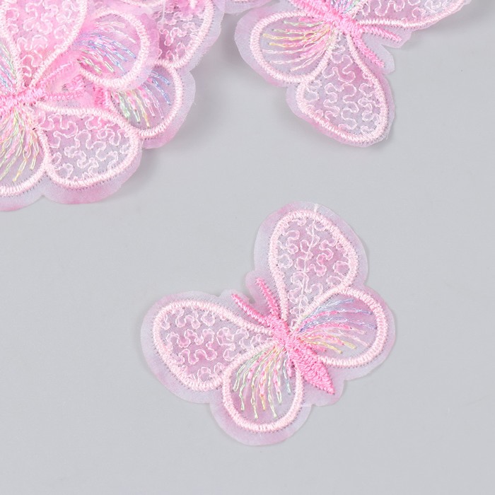 Декор для творчества текстиль вышивка «Бабочка розовая»