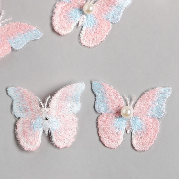 Декор для творчества текстиль вышивка «Бабочка розово-голубая»