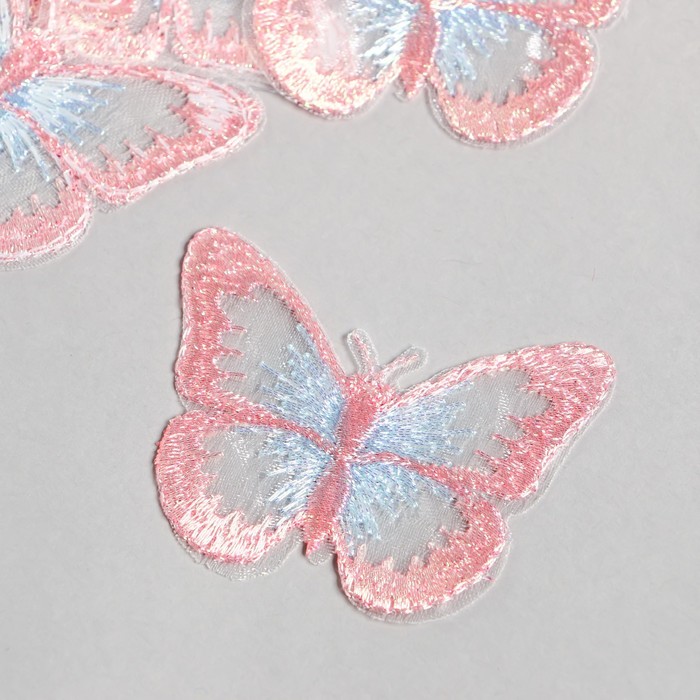 Декор для творчества текстиль вышивка «Бабочка розово-голубая»