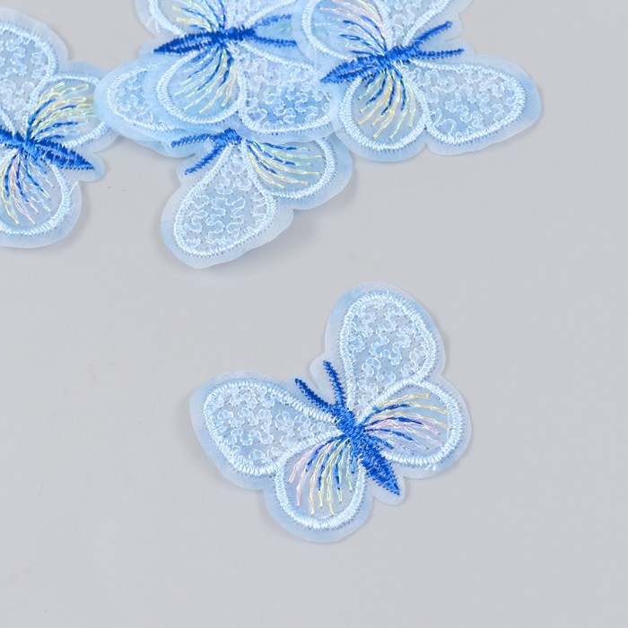 Декор для творчества текстиль вышивка «Бабочка синяя»