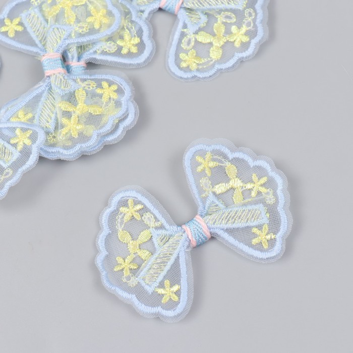 Декор для творчества текстиль вышивка «Бантик в цветочках голубовато-жёлтый»