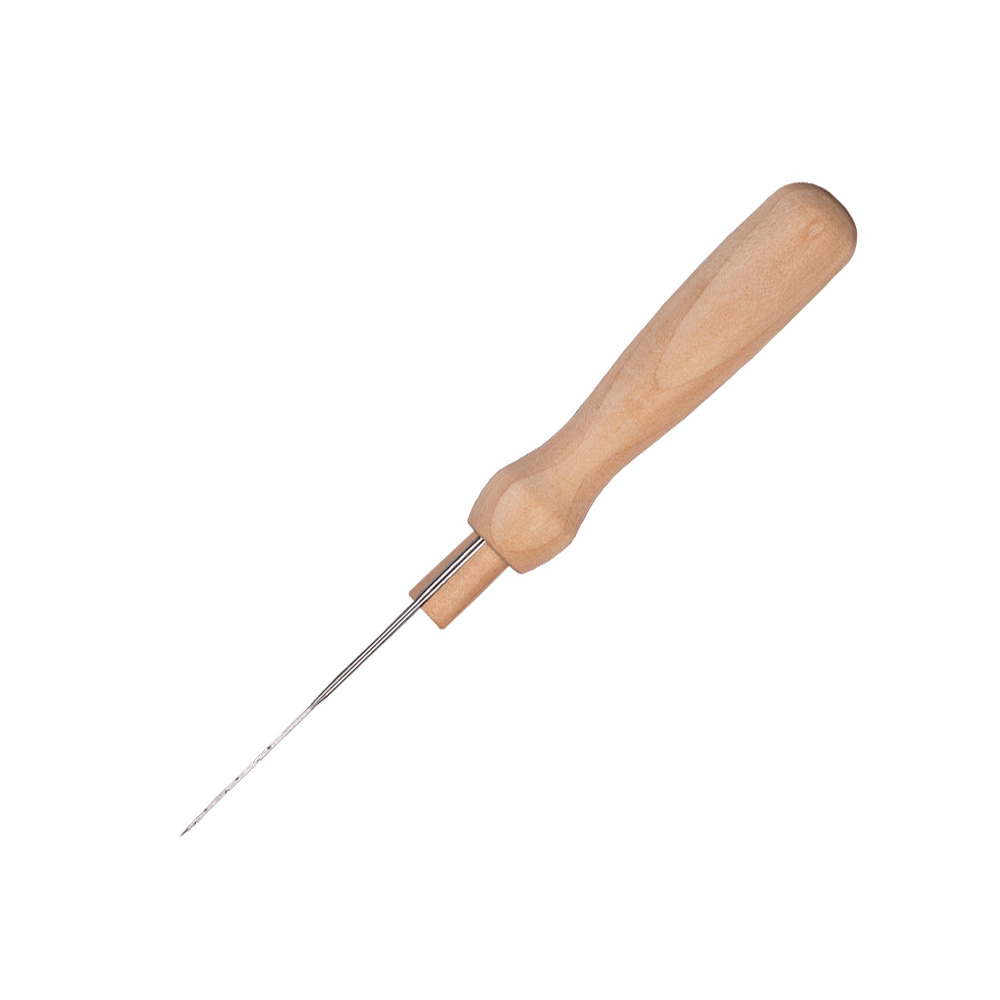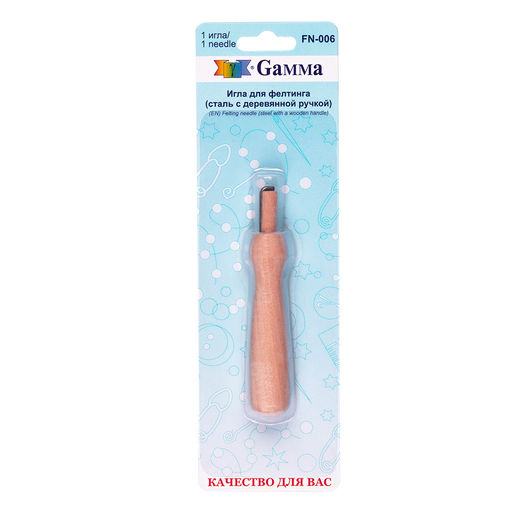 Игла имеет насечки, которые позволяют «перепутывать» и уплотнять волокна шерсти, чем и достигается эффект валяния. Удобная деревянная ручка является разборной, что дает возможность в ходе работы менять иглы на нужный размер. Ручка подходит к иглам №36 для грубой шерсти, №40 для тонкой шерсти.