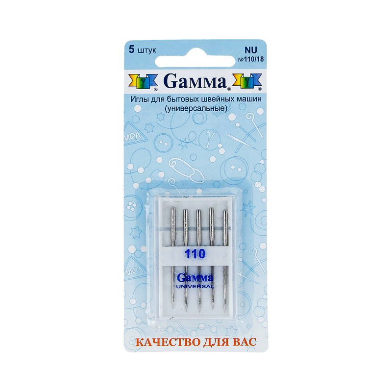 Иглы универсальные «Gamma» NU №110 5 шт в блистере.