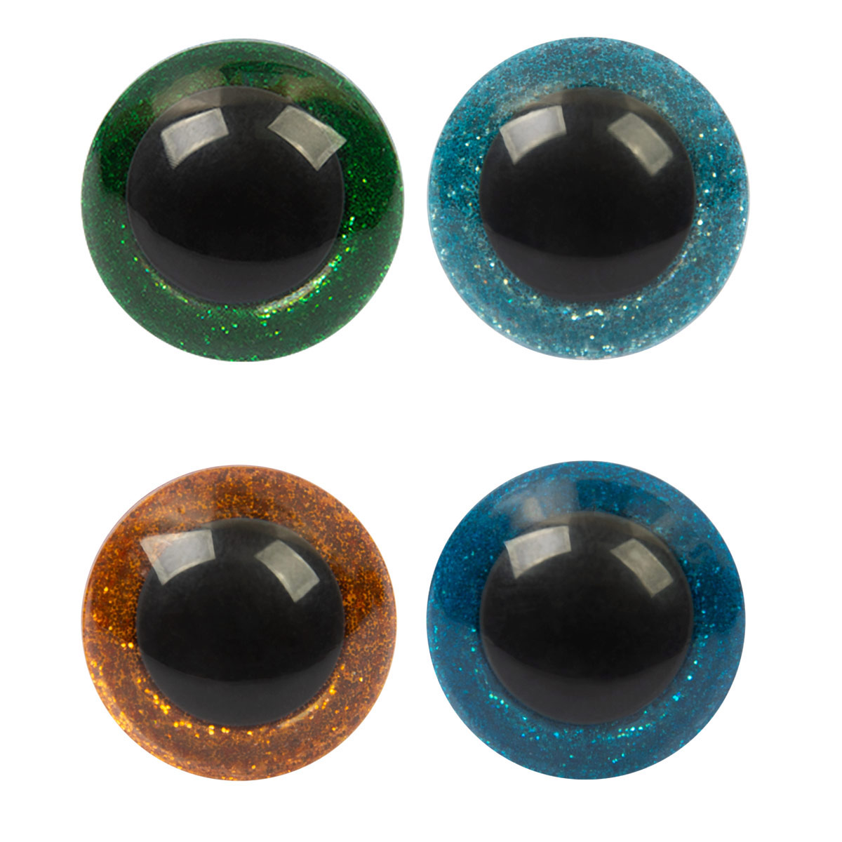 Глаза пластиковые с блестящей вставкой ТМ «HobbyBe». Прозрачные глаза, в комплекте с фиксаторами и блестящими вставками отлично подойдут для изготовления игрушек в различных техниках.