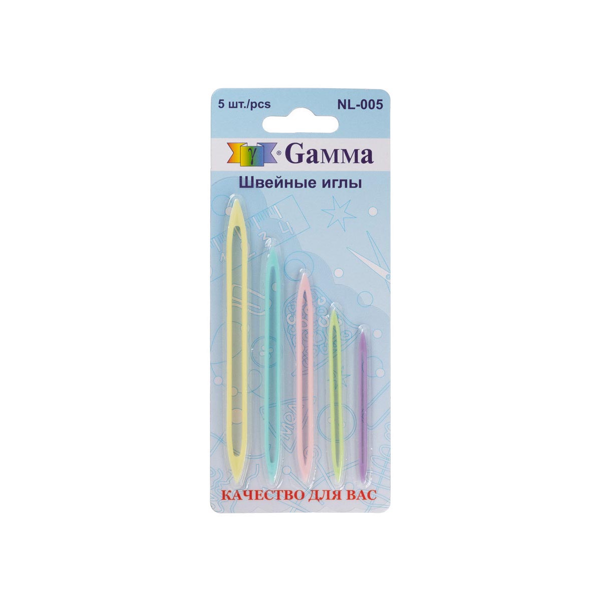 Иглы для вязаных изделий NL-005 Gamma. Широкое ушко позволяет сшивать вязаные изделия нитью, пряжей любой толщины.