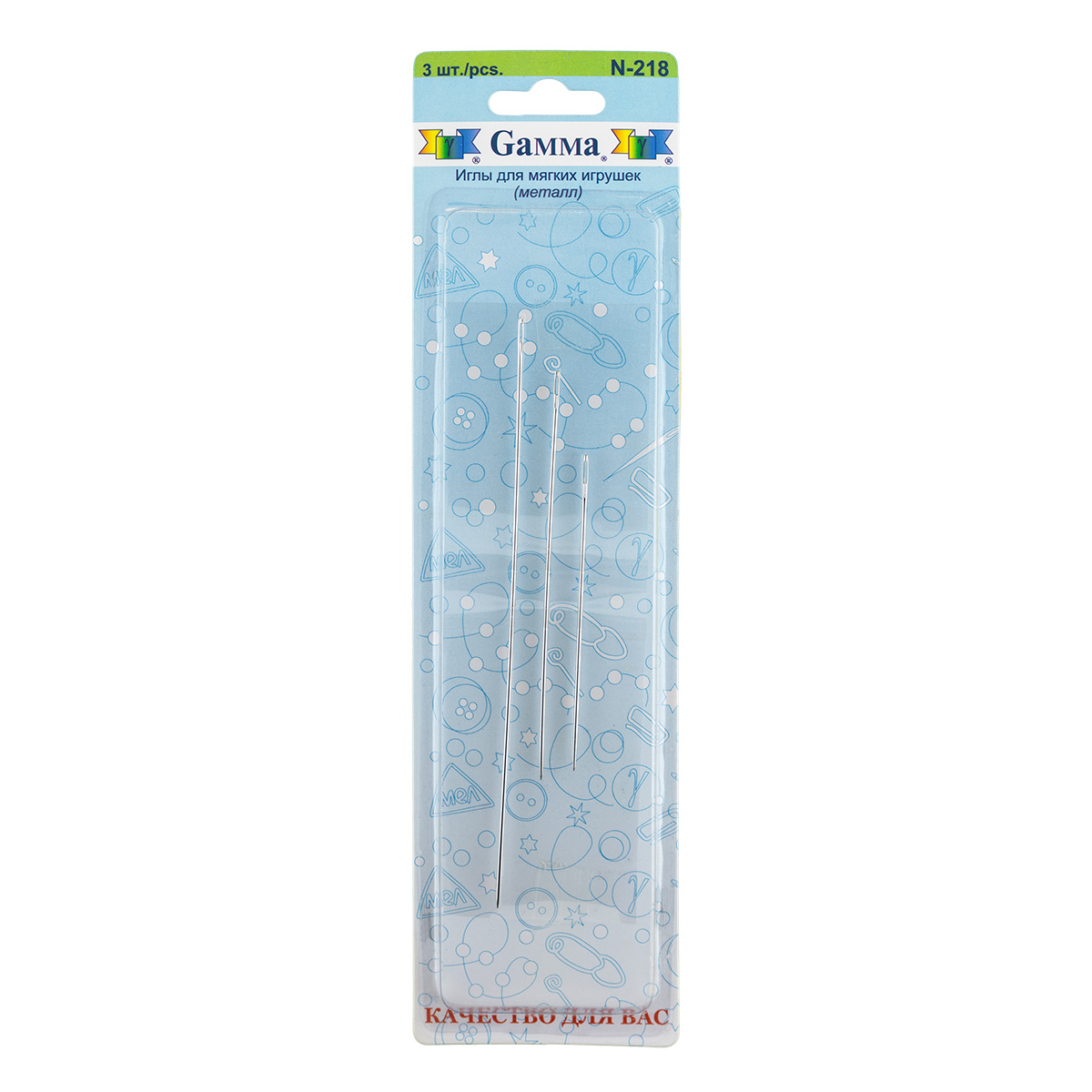 Иглы для мягких игрушек Gamma. В набор игл для шитья игрушек входят: длинные острые иглы с длинным плоским ушком, которое аккуратно раздвигает волокна ткани, что позволяет выполнять аккуратный шов. Используются для шитья мягких игрушек, кукол.
