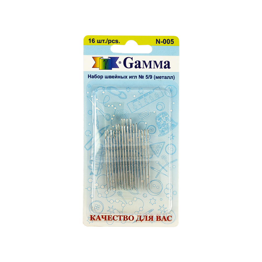 Иглы для шитья Gamma N-005 . сделаны из высокоуглеродистой стали с идеальной гладкой поверхностью и никелированным покрытием, которое защищает иглу от коррозии и окисления. Ушки внутри игл отполированы и не имеют зацепок, поэтому нить не будет рваться при работе.