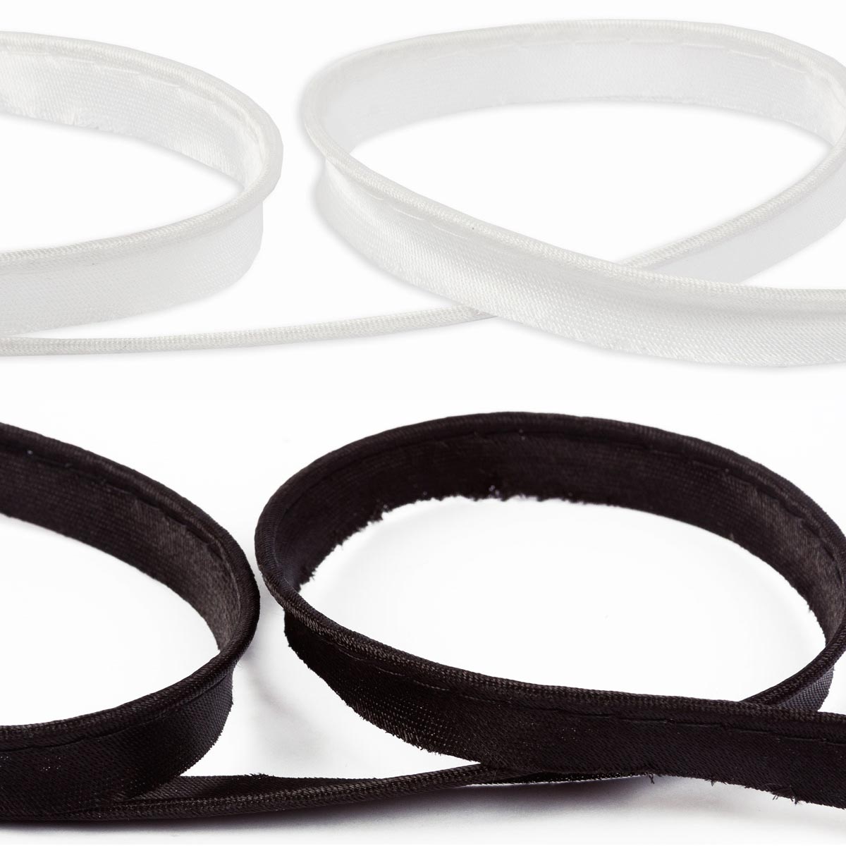 Кант атласный сшивной со шнуром. Представляет собой ленту из ткани, сложенная пополам, с вшитым руликом толщиной 1.5 мм. Используется для отделки швов и краев одежды, штор, подушек и постельного белья. Допустимое расхождение в оттенке цвета 5%.