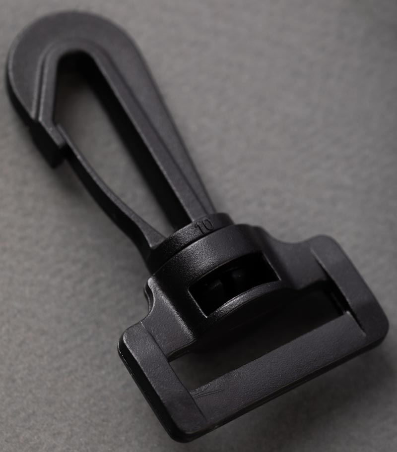 Карабин используется при пошиве или ремонте кожгалантерейных или швейных изделий, сумок, рюкзаков. Предназначен для соединения различных лент и частей. Имеет поворотное крепление и удобен в использовании на различных изделиях в любом положении. Изготовлен из прочного пластика высокого качества — полиацеталя. Может быть использован в комплекте с регулировочными пряжками, фастексами или отдельно.
