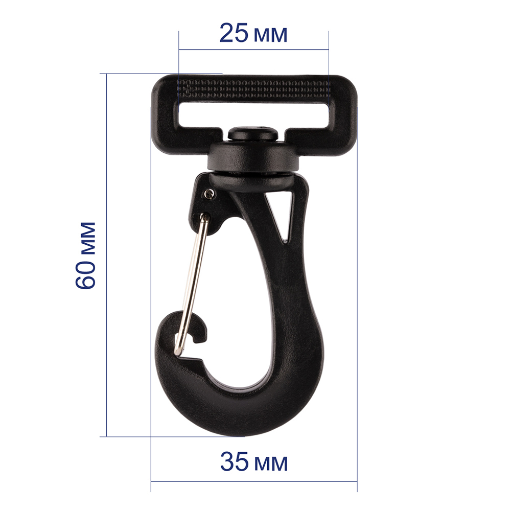 Карабин используется при пошиве или ремонте кожгалантерейных или швейных изделий, сумок, рюкзаков. Предназначен для соединения различных лент и частей. Имеет металлическую застежку, что дает более прочное крепление и удобен в использовании на различных изделиях. Изготовлен из прочного пластика высокого качества — полиацеталя.