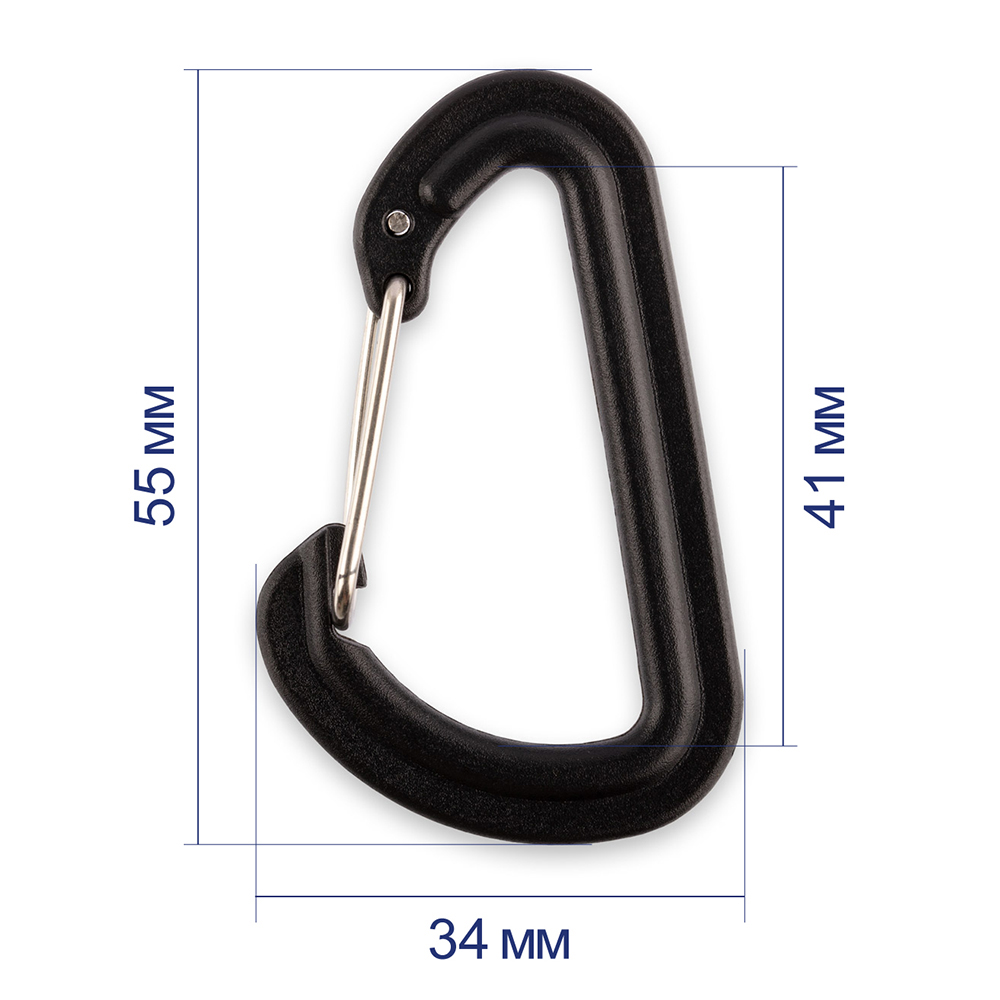 Размер карабина: 55 х 34 мм, Цвет: черный, Разрывное усилие: 35 кг