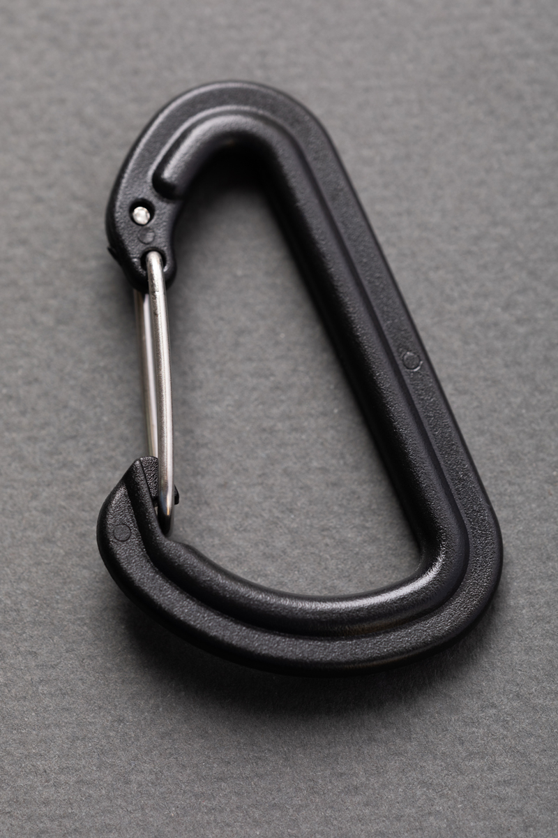 Карабин используется при пошиве рюкзаков . Предназначен для соединения различных лент, строп и других частей. Имеет усиленную застежку и удобен в использовании на различных изделиях в любом положении. Изготовлен из прочного пластика высокого качества — полиацеталя. Может быть использован в комплекте с регулировочными пряжками, фастексами или отдельно.