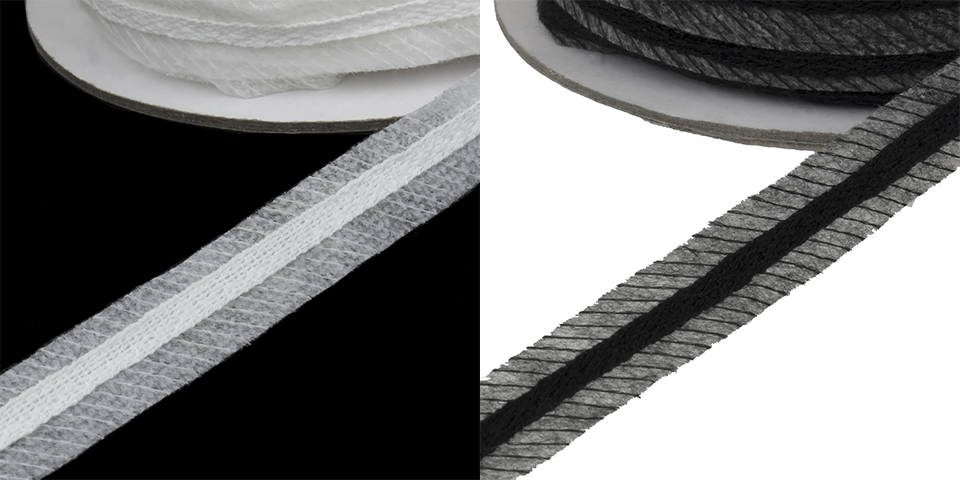 Клеевая кромка на основе нитепрошивного флизелина, выкроена по косой и усилена сутажом.