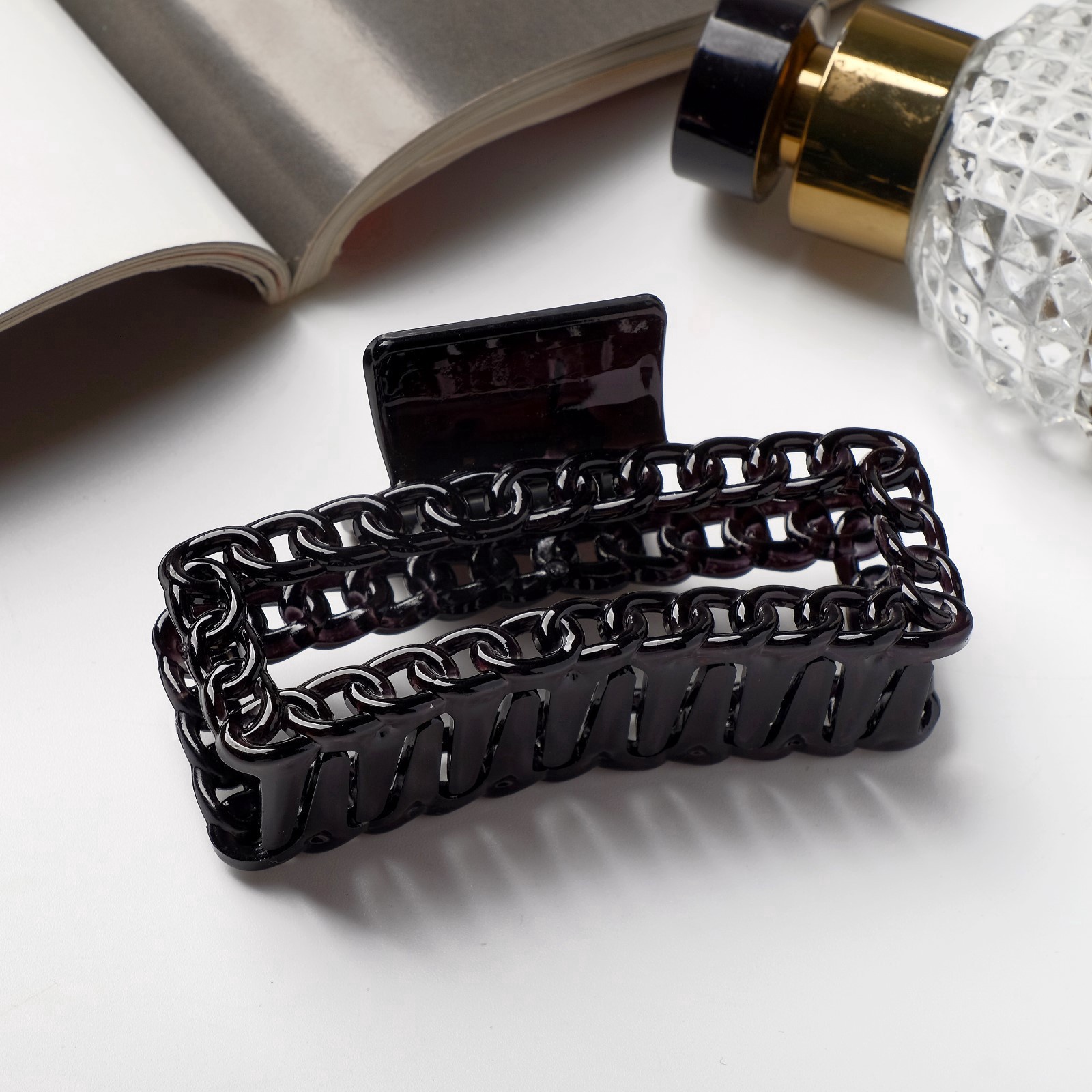 - Надежная фиксация: Прочный механизм из качественного пластика крепко удерживает волосы, не повреждая их. Зажим не скользит и не расстегивается в течение дня.