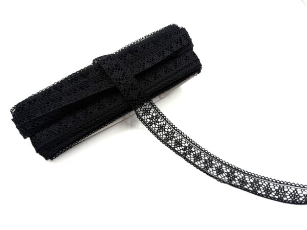 Текстильное изделие, в котором ажурный орнамент и изображения образуются в результате переплетения нитей. Эластичное кружево может тянуться во всех направлениях. Одним из плюсов эластичного кружева, оно отлично держит форму. Используется при пошиве платьев, детской одежды, и многих других изделий.