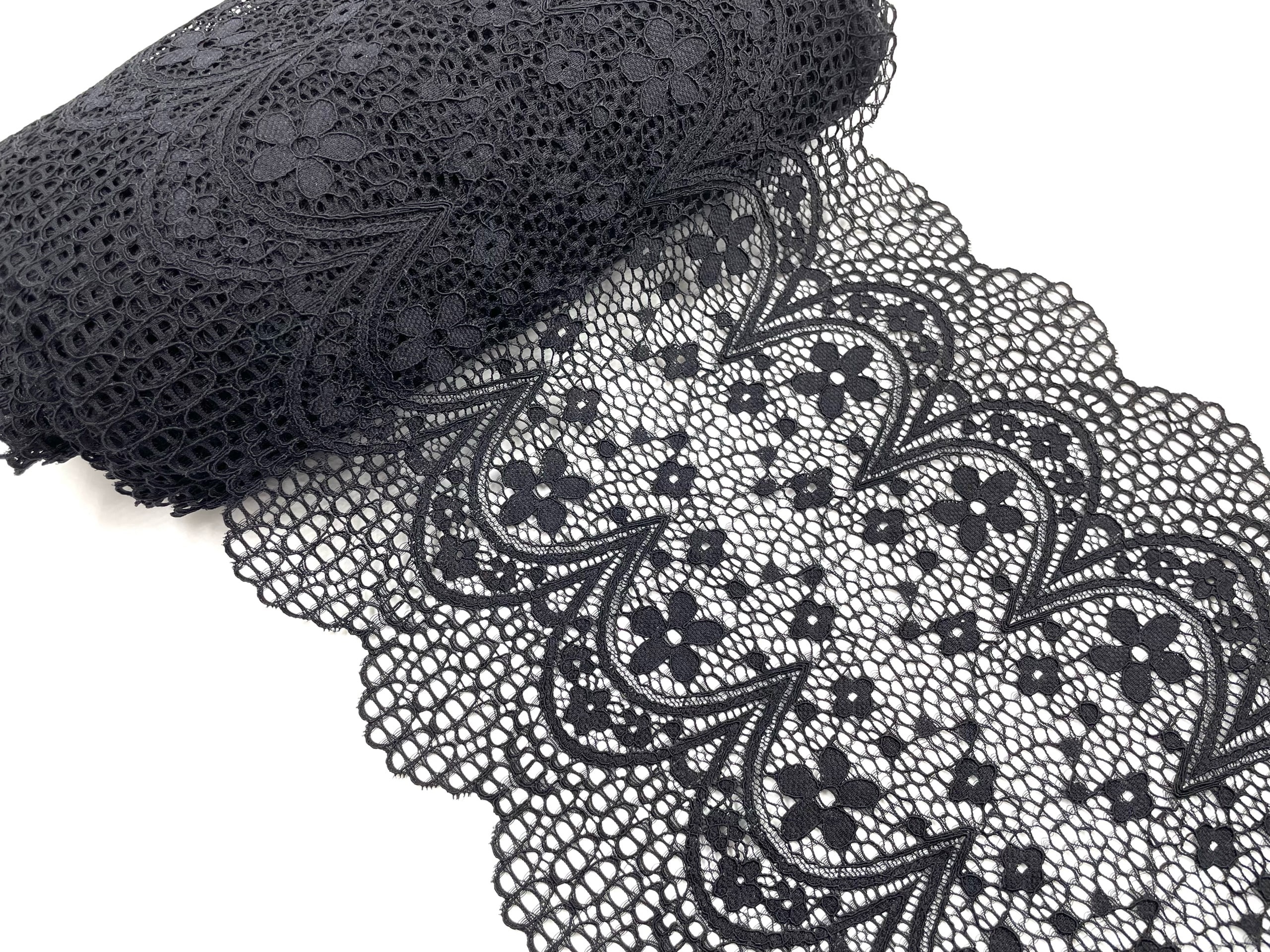 Очень нежное и воздушное эластичное кружево. Мягкое, бархатистое, очень приятное к телу. Хорошо тянется. Идеально подходит для нижнего белья, одежды, домашнего текстиля и других изделий.