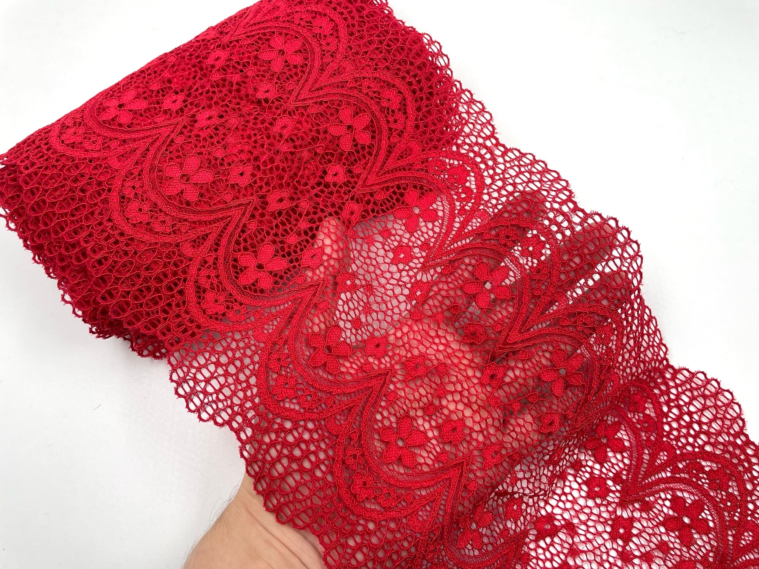 Очень нежное и воздушное эластичное кружево. Мягкое, бархатистое, очень приятное к телу. Хорошо тянется. Идеально подходит для нижнего белья, одежды, домашнего текстиля и других изделий.