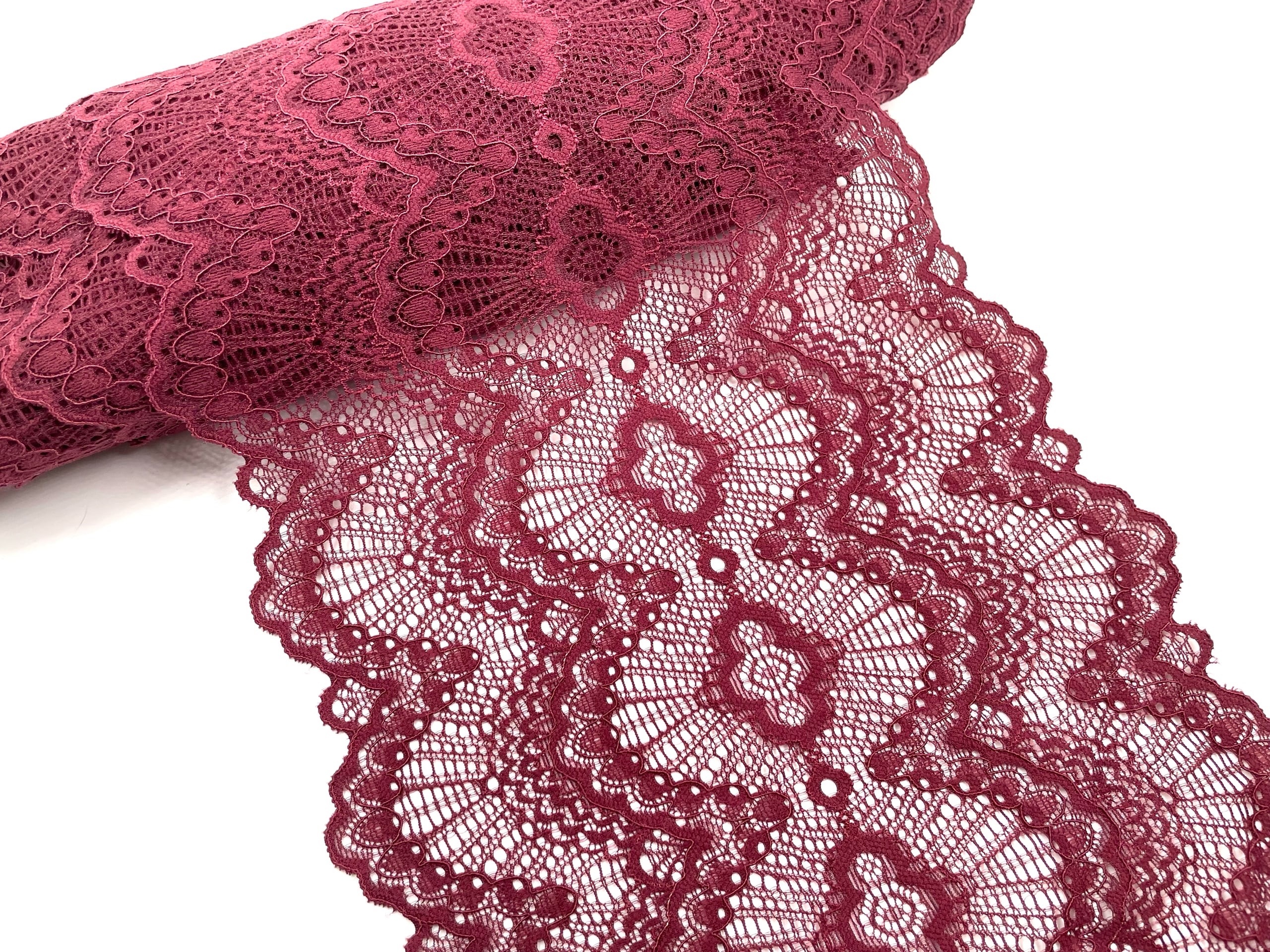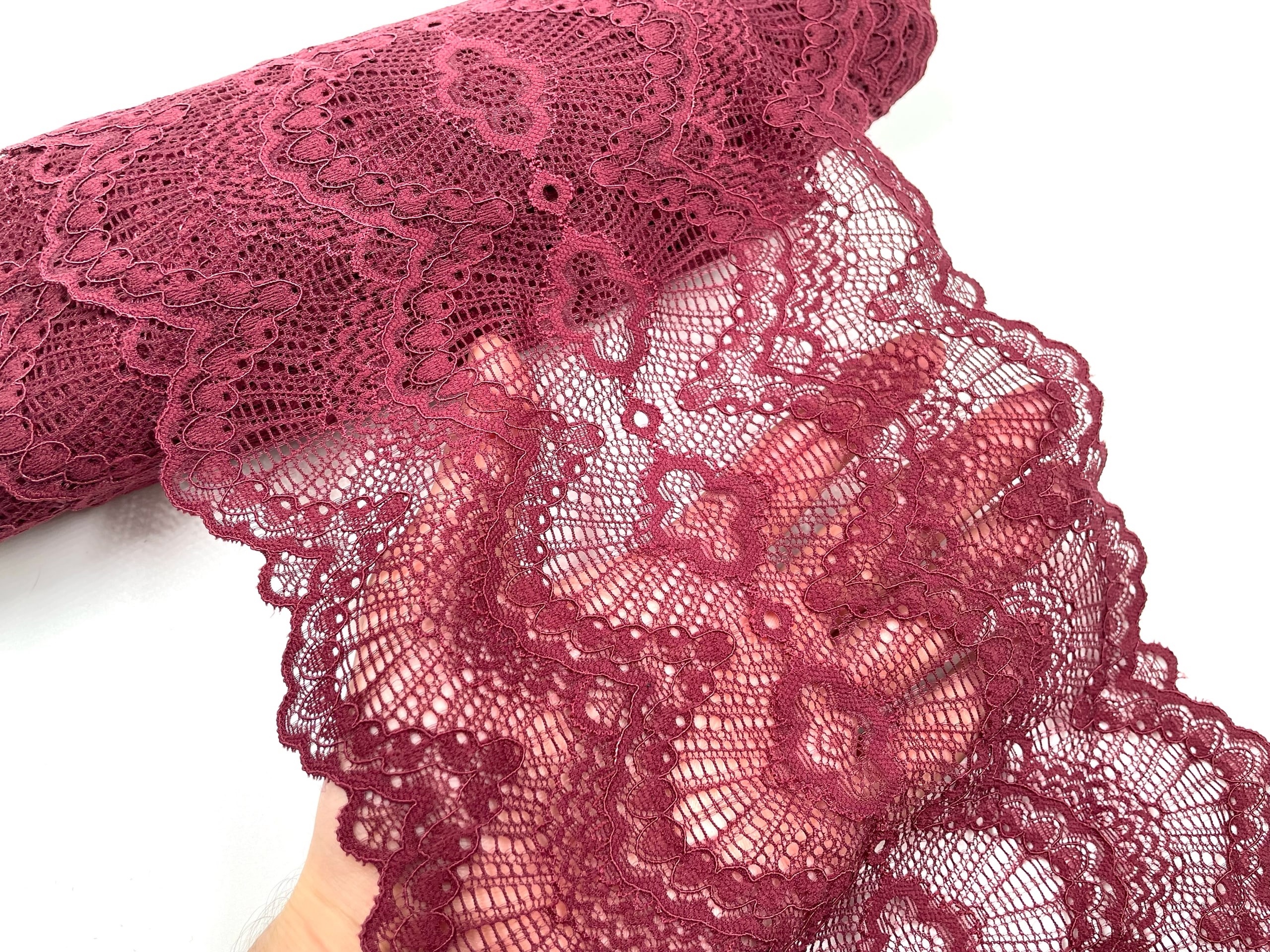 Очень нежное и воздушное эластичное кружево. Мягкое, бархатистое, очень приятное к телу. Хорошо тянется. Идеально подходит для нижнего белья, одежды, домашнего текстиля и других изделий.