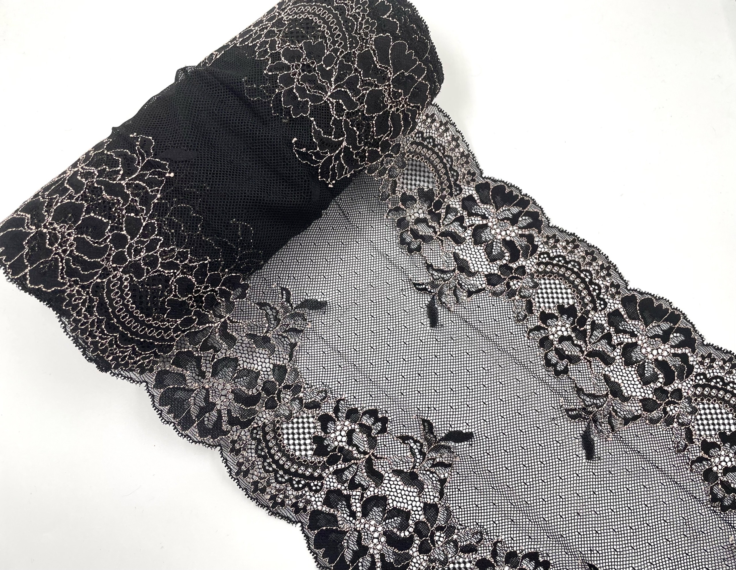 Очень нежное и воздушное эластичное кружево. Мягкое, очень приятное к телу. Хорошо тянется. Идеально подходит для нижнего белья, одежды, домашнего текстиля и других изделий.