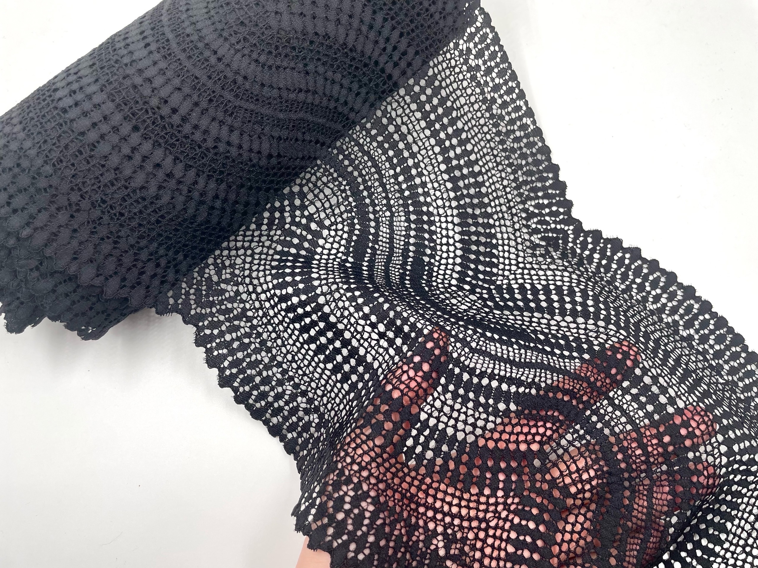 Очень нежное и воздушное эластичное кружево. Мягкое, бархатистое, очень приятное к телу. Хорошо тянется. Идеально подходит для нижнего белья, одежды, домашнего текстиля и других изделий.