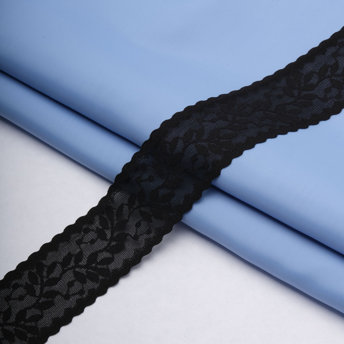 Эластичное кружево для шитья – тонкое и хорошо растяжимое, с нежным ажурным узором. За счёт эластичности материал комфортно прилегает к телу, не стесняет движения. Используется как декоративная вставка или как основной материал для пошива. Кружево подходит для различных предметов одежды: