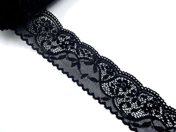 Текстильное изделие, в котором ажурный орнамент и изображения образуются в результате переплетения нитей. Эластичное кружево может тянуться во всех направлениях. Одним из плюсов эластичного кружева, оно отлично держит форму. Используется при пошиве платьев, детской одежды, и многих других изделий.