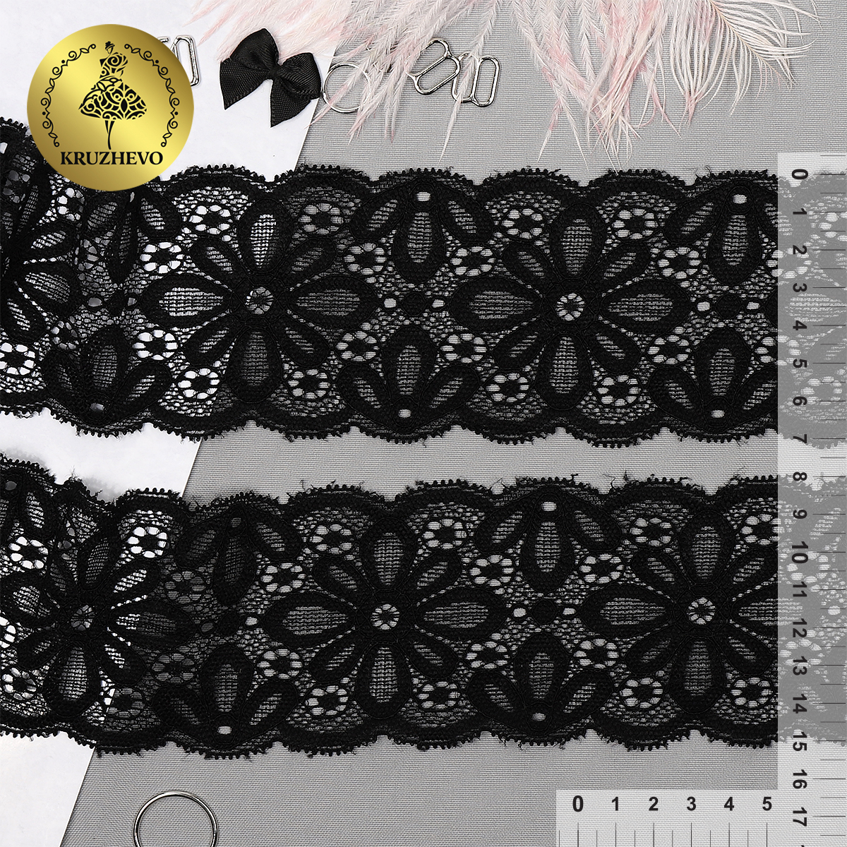 Эластичное кружево широко применяется в декорировании одежды и женского белья. Этот материал тонкий и лёгкий, хорошо принимает нужную форму, но при этом не рвётся и не пушится.