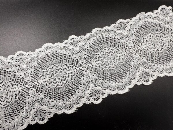 Текстильное изделие, в котором ажурный орнамент и изображения образуются в результате переплетения нитей. Эластичное кружево может тянуться во всех направлениях. Одним из плюсов эластичного кружева, оно отлично держит форму. Используется при пошиве платьев, детской одежды, и многих других изделий.
