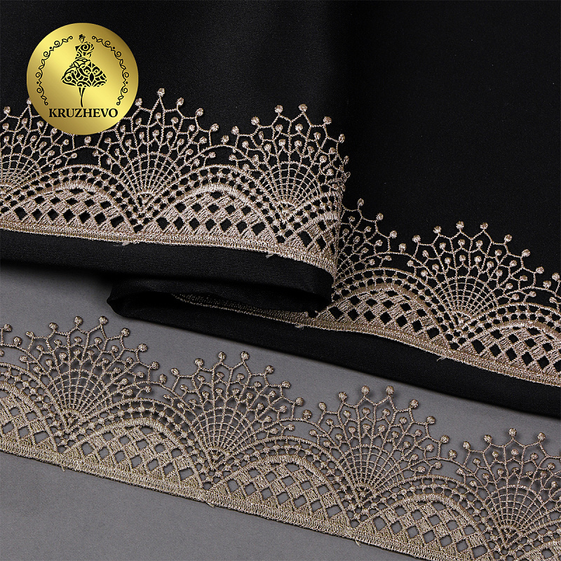 Ажурное, фактурное кружево гипюр от бренда Kruzhevo. Рисунок плотный, детально вывязанный. Отлично держит форму, при этом является достаточно гибким и удобным в работе. Подойдёт для отделки и украшения текстильных изделий, одежды и аксессуаров.