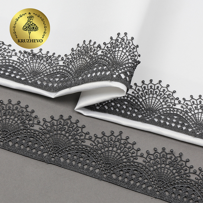 Ажурное, фактурное кружево гипюр от бренда Kruzhevo. Рисунок плотный, детально вывязанный. Отлично держит форму, при этом является достаточно гибким и удобным в работе. Подойдёт для отделки и украшения текстильных изделий, одежды и аксессуаров.