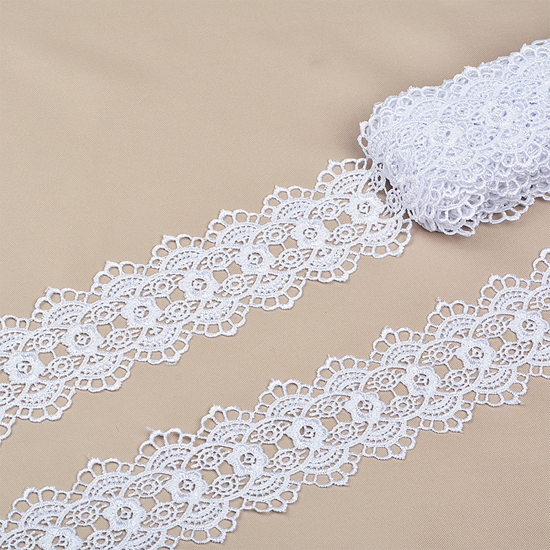 Ажурное, фактурное кружево гипюр от бренда Kruzhevo. Рисунок плотный, детально вывязанный. Отлично держит форму, при этом является достаточно гибким и удобным в работе. Подойдёт для отделки и украшения текстильных изделий, одежды и аксессуаров.