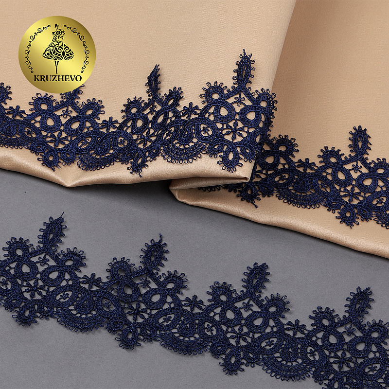 Ажурное, фактурное кружево гипюр от бренда Kruzhevo. Рисунок плотный, детально вывязанный. Отлично держит форму, при этом является достаточно гибким и удобным в работе. Подойдёт для отделки и украшения текстильных изделий, одежды и аксессуаров.