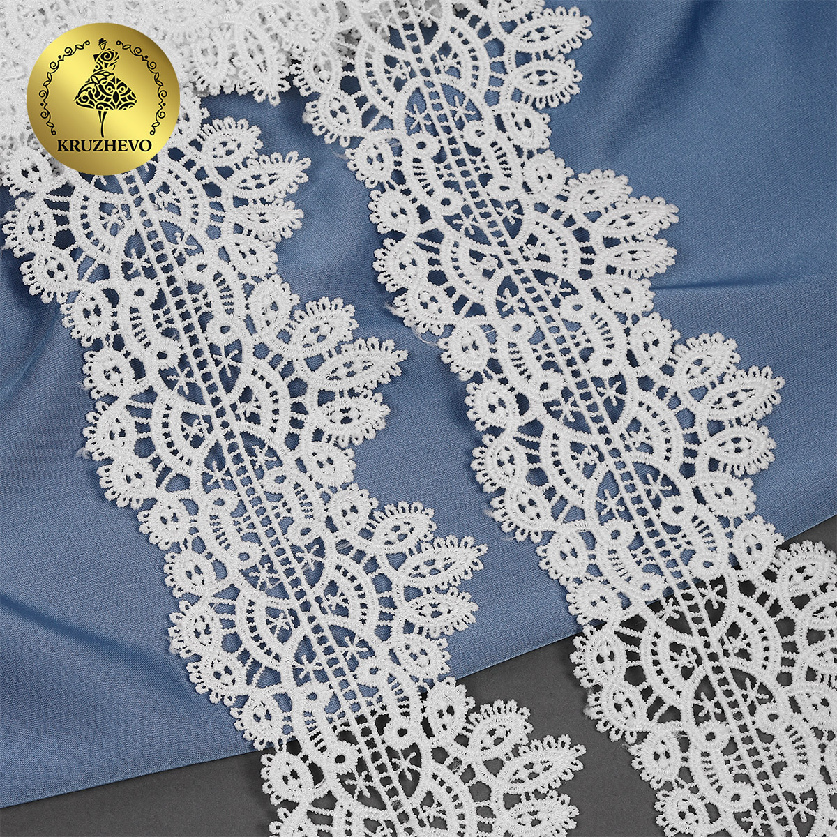 Ажурное, фактурное кружево гипюр от бренда Kruzhevo. Рисунок плотный, детально вывязанный. Отлично держит форму, при этом является достаточно гибким и удобным в работе. Подойдёт для отделки и украшения текстильных изделий, одежды и аксессуаров.